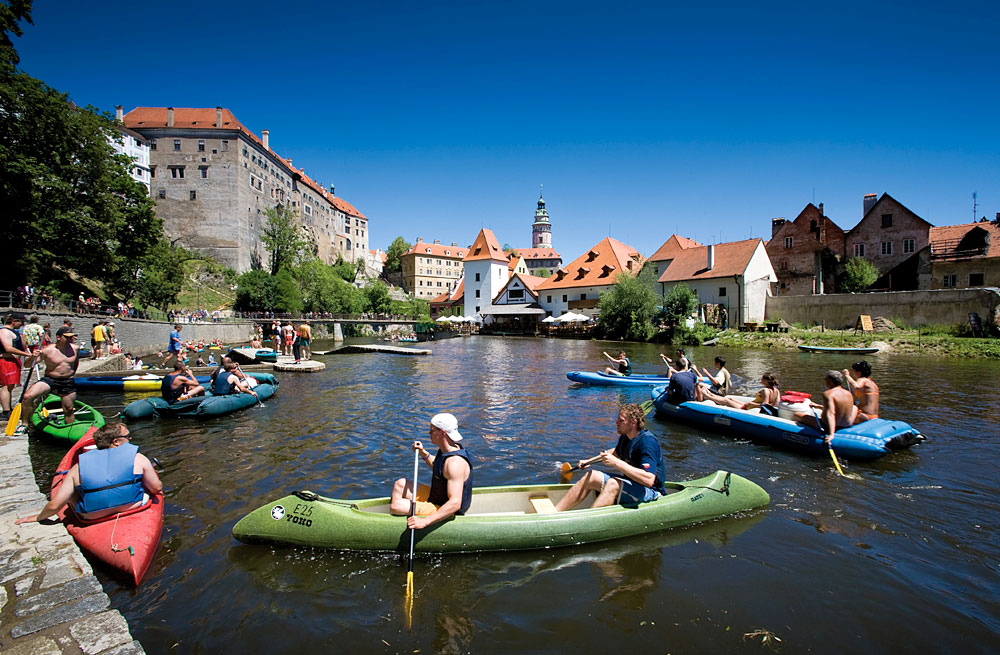 Eine Paddeltour ist ein Ausflug auf dem Wasser, bei dem man sich in einem kleinen Boot durch eigene Muskelkraft mit einem Paddel fortbewegt. In der Region um Krumau ist dies die beliebteste Freizeitaktivität auf der Moldau. Eine Paddeltour hat mit dem Rafting nichts zu tun, weil das Rafting mit wilden Flüssen verbunden ist. Die Moldau ist ein ruhiger Fluss. ![]()